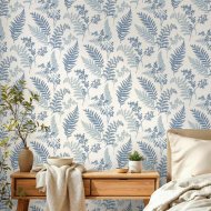 FD43767 FINE DECOR FERN BLUE BLOWN VINYL WALLPAPER