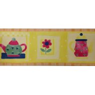 72336 CROWN COLOURFUL TEAPOT AND FLOWERS VINYL BORDER