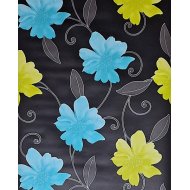 E59701 DERECT BLACK LIME AND TURQUOISE FLOWERS WALLPAPER