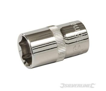6-point hex socket for maximum torque transfer to the face of the fastener. Precision cold-forged, hardened and tempered chrome vanadium steel. Fully polished and nickel chrome-plated for durable corrosion resistance. Chamfered ends and thin walls for positive location on fastener. Knurled ring provides grip and control in the hand, and bearing hole provides solid connection to the tool.
