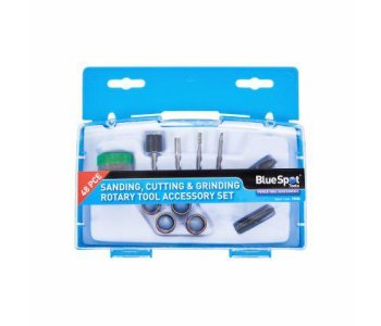 The Blue Spot Tools 48 PCE sanding & cutting accessories tool set is ideal for cutting and sanding precision craft and hobby work. Ideal for use with most rotary tools. Includes 48 assorted cutting and sanding accessories including sanding drums, resinoid cutting discs and HSS cutters.