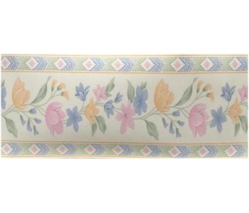 Made from high-quality paper, this non-pasted, matt finish border features a delicate floral pattern in off white, pink, blue, green, and orange colours.