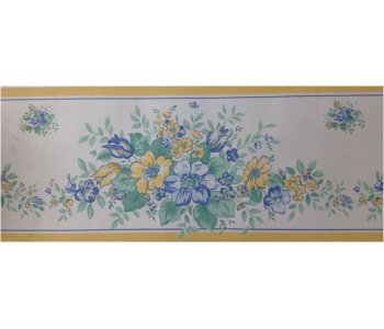 The 2339 Homestead Yellows and Blues Wallpaper Border is a floral patterned wallpaper border by Holmes.