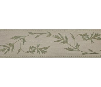 The design features delicate green vine-like elements with small leaves and flowers, creating a continuous flow across the border.