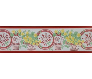 18.90Metres 449 Storeys product is a self-adhesive vinyl border with a crockery and flower pattern in red, white, green and yellow colours.
