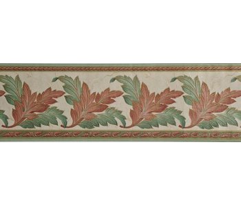 The 500036 Zen Green and Orange Leaf Cushion Vinyl Border.