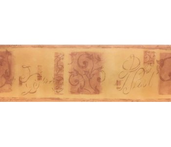 The Tim Wilman border has different shades of terracotta and a hint of gold with leaf and writing design.