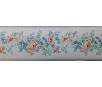 This is a non-pasted wallpaper border featuring a floral pattern in blue, green, rust, and off-white colours.