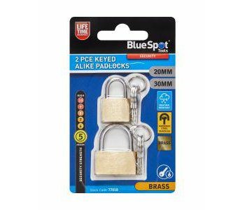 The Blue Spot Tools 2 PCE 20mm & 30mm brass padlocks are manufactured from solid brass with brass cylinders for increased durability and weather resistance.