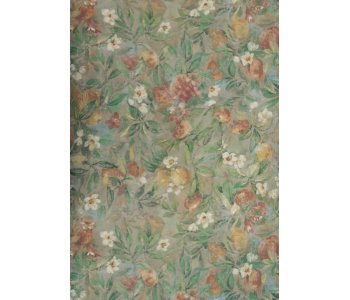 Embrace the beauty of moonlit nights with this enchanting wallpaper featuring intricate fruit trees and delicate flowers in shades of green, orange, white, and yellow.