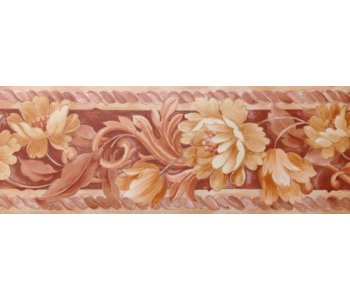 Introducing the 9382 Zen Border, featuring a sophisticated shades of brown and pale burnt orange floral and leaf design, perfect for adding a touch of tranquility to your space.