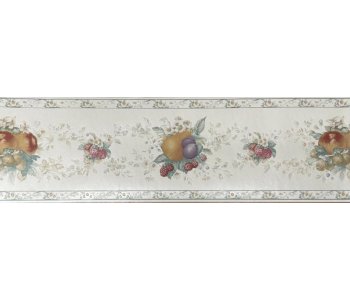 Made from high-quality vinyl, this peelable and washable border features a beautiful fruit pattern in shades of off white, plum, red, sage, and beige.