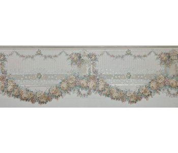 This image showcases an ornate and richly detailed border, ideal for classical or vintage-inspired interiors. The design features a lavish garland of flowers and foliage, primarily in pastel shades of cream, beige, pink, and light green. The floral arrangement includes large, lush blooms interspersed with smaller flowers and leaves, creating a sense of abundance and opulence.